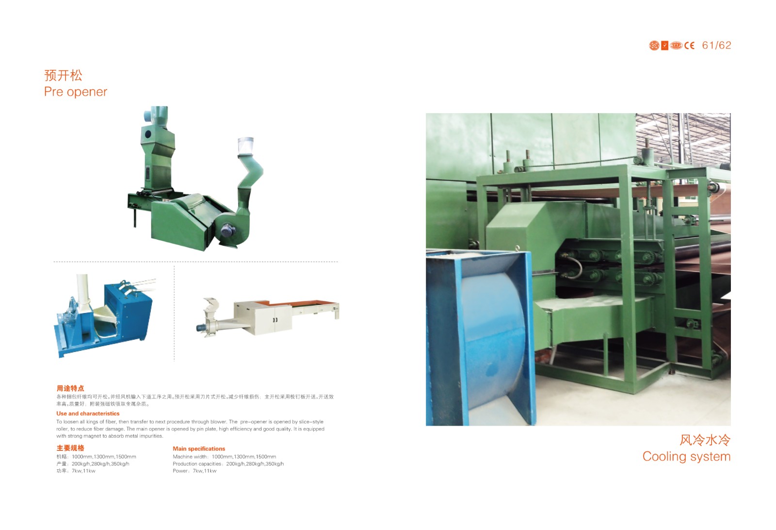 6、生產(chǎn)能力:梳理機(jī)產(chǎn)量 150KG--350KG/H(根據(jù)化纖原料和