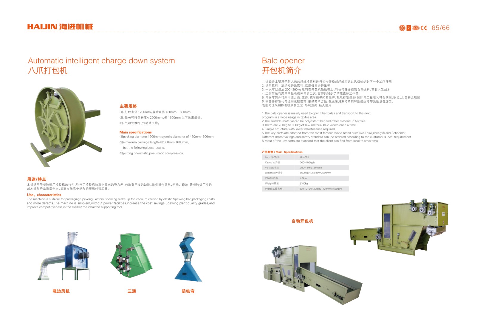 1)機(jī)器功能:將不同規(guī)格的各種捆包纖維按設(shè)定的速度比例輸送給前方機(jī)臺(tái)的 喂棉簾上,可以多